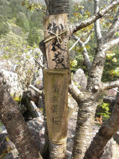 何も考えずに鳥居を潜ると、一見して宮司さんだと分かる白装束・白髪の方が女の子3人組に黄緑色の花が咲いている「御衣黄桜」の説明をしていました。