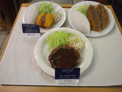 今回は「一皿豚ミンチかつのセット+ロールキャベツ1貫」と「サービス野菜サラダ」を注文しました。