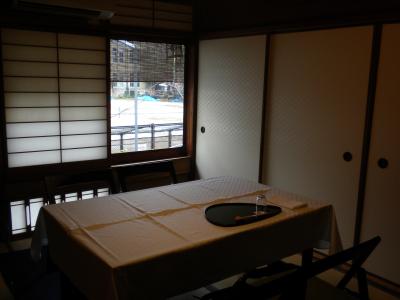 真っ白いクロスの掛かったテーブル席の和室です。