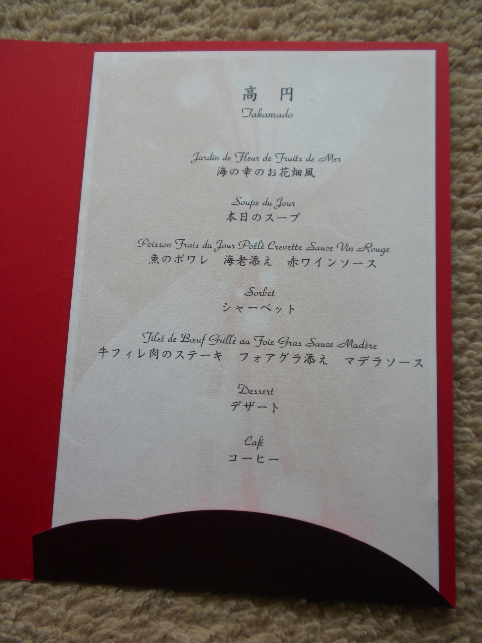 夕食はメインダイニングの「レストラン ラタン」で宿泊者限定のコースを頂きました。