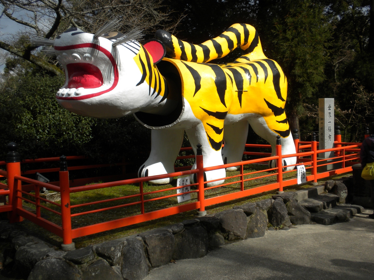 聖徳太子が寅年・寅の日・寅の刻に毘沙門天を感得したという謂れで、虎がシンボルのお寺です。