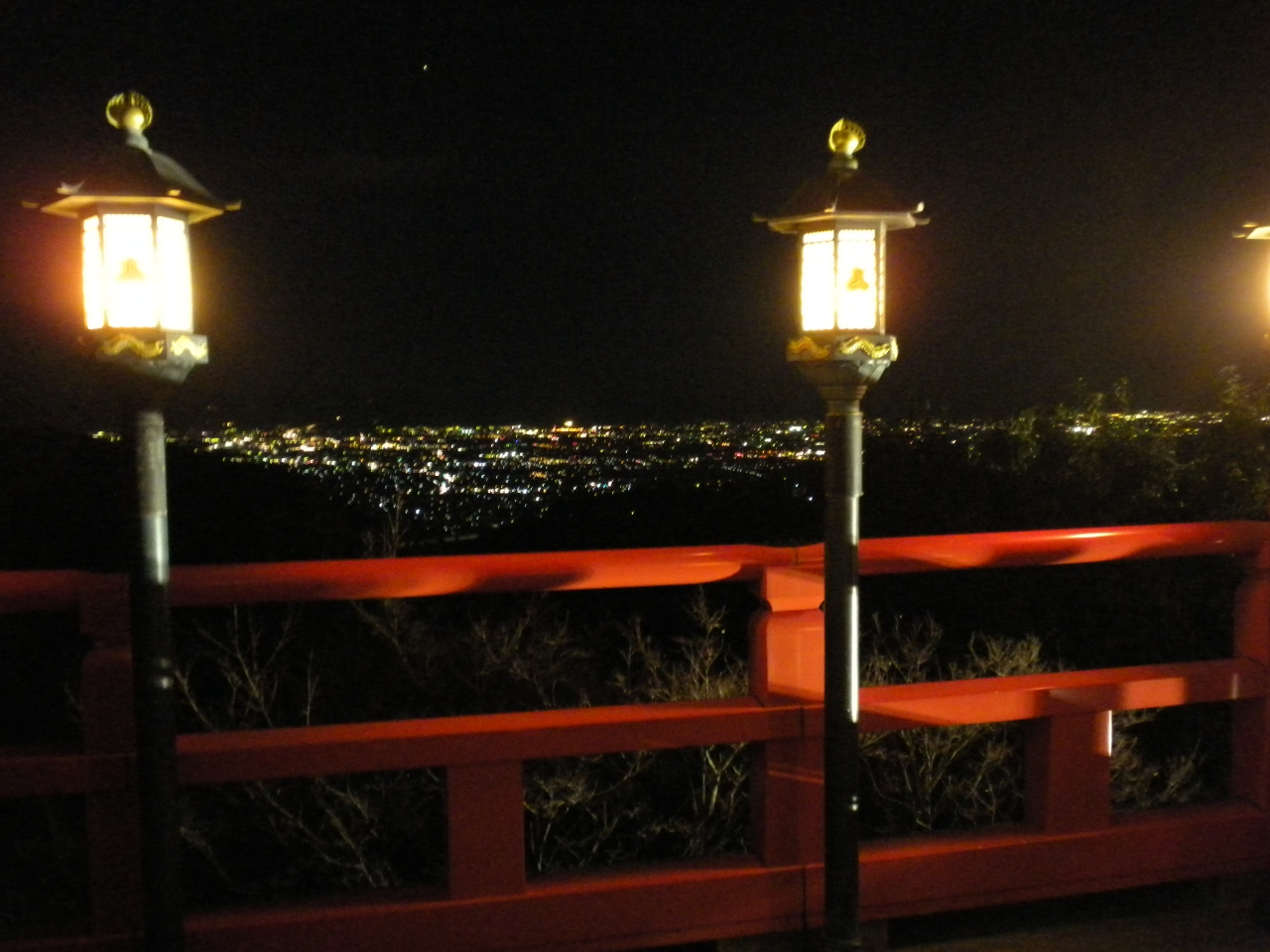 清水の舞台のような本堂から見渡す奈良盆地の眺めは素晴らしく、特に夜景は絶景です。