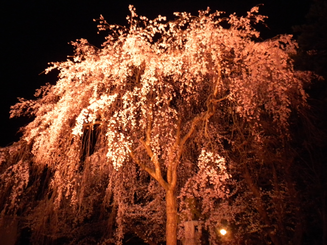 “日本三大夜桜”を謳うだけあって、ピンクのライトに照らされた桜ロードの桜や、その先にあるライトアップされた枝垂桜は昼間にはない格別な美しさでした。- 旅行時期