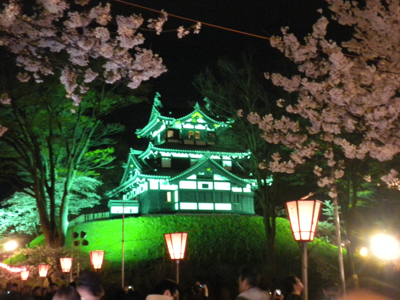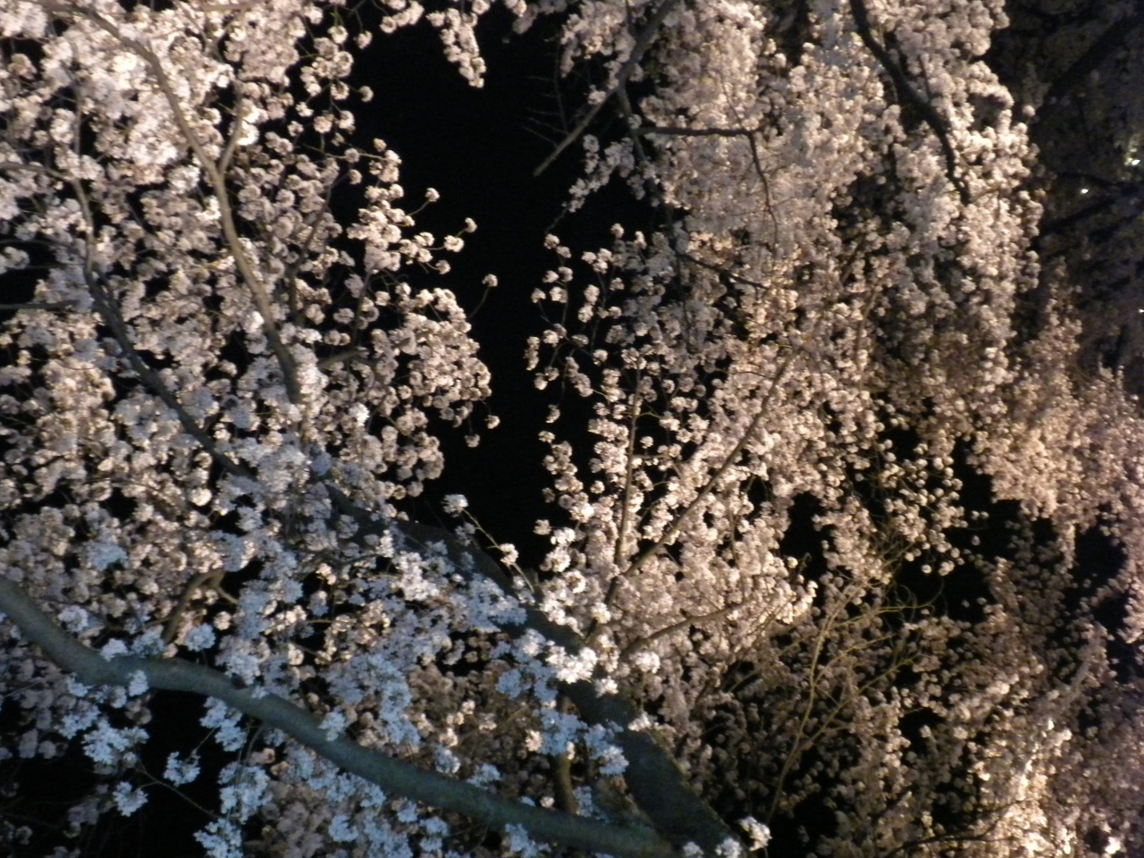 夜桜見学ツアーの僅かな自由時間でしたが、地元ガイドさんが「上から見る桜は格別だ」と話されていたので走るようにして見に行きました。