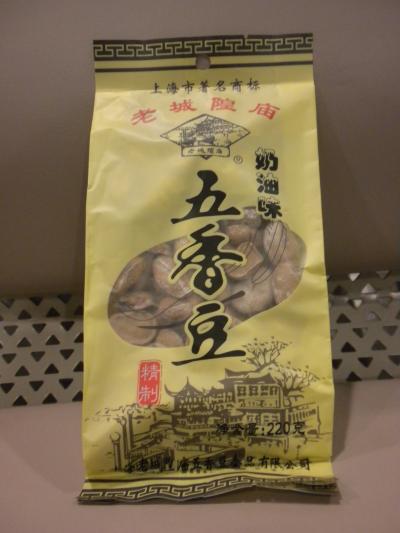 中国のお土産なんてハナから買う気も無かったのですが、上海の豫園に行くと中央広場に由緒ありげな「五香豆商店」があり、店頭に山積みとなった袋が次々と売れていく様に触発されてつい購入してしまいました。