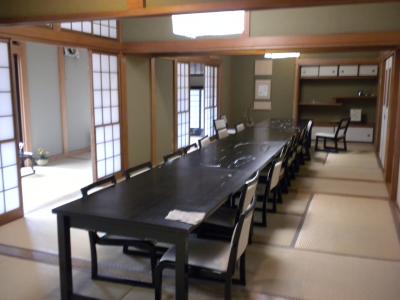 パーティーの為の丸テーブルが雑多に置かれていましたが、入口に鍵も掛かっていなかったし、勝手に“土下座の間”に電気を点けて写真を撮らせて貰いました。