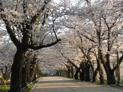 このツアーは高田駅前のビジホに泊まるので夜桜だけではなく朝の桜も観られることが特長です。