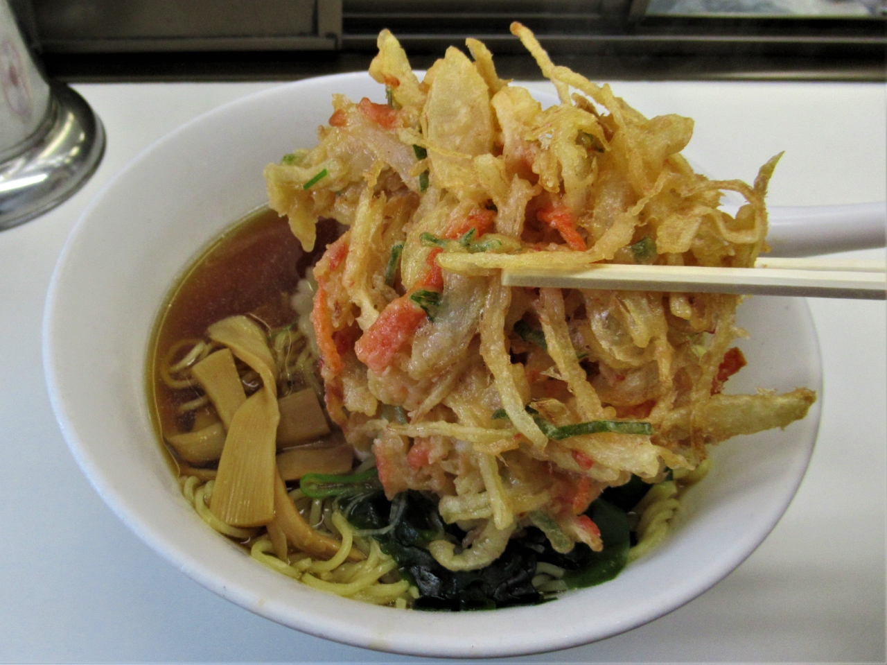 秩父味噌で甘辛くやわらかく煮込んだ豚バラ肉の上に散らされたいかにも“タヌキン亭”らしい揚げ玉がサクサクとした食感のアクセント。