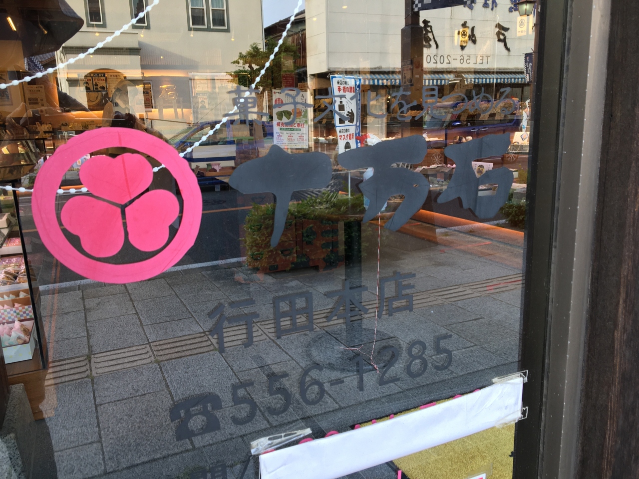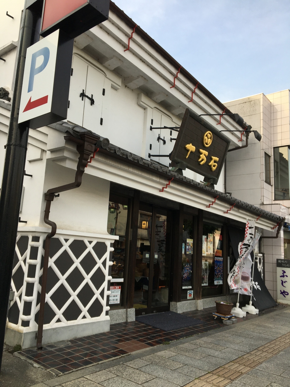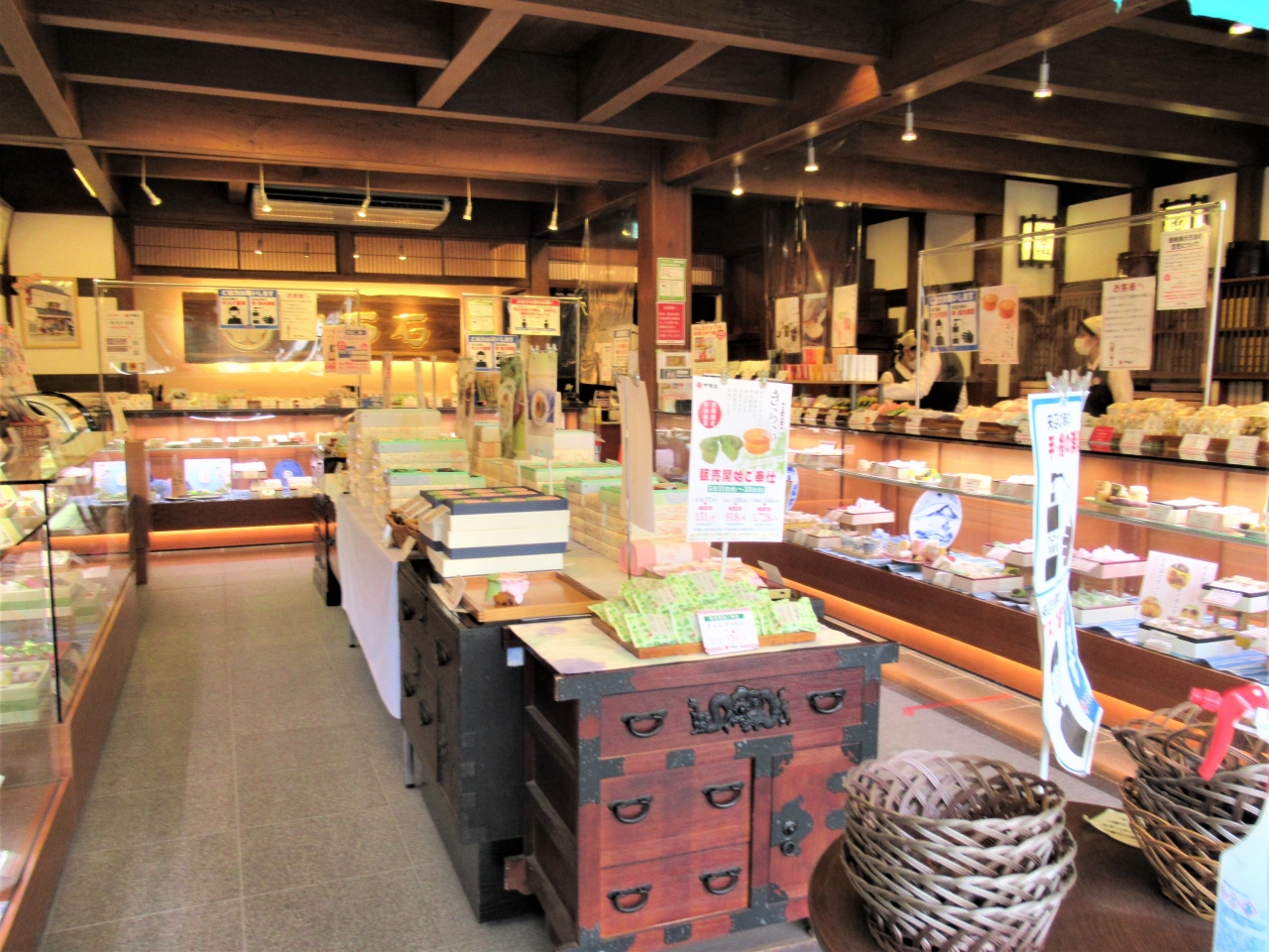 市役所通りに面した白壁の土蔵造りが風情ある和菓子屋さんです。
