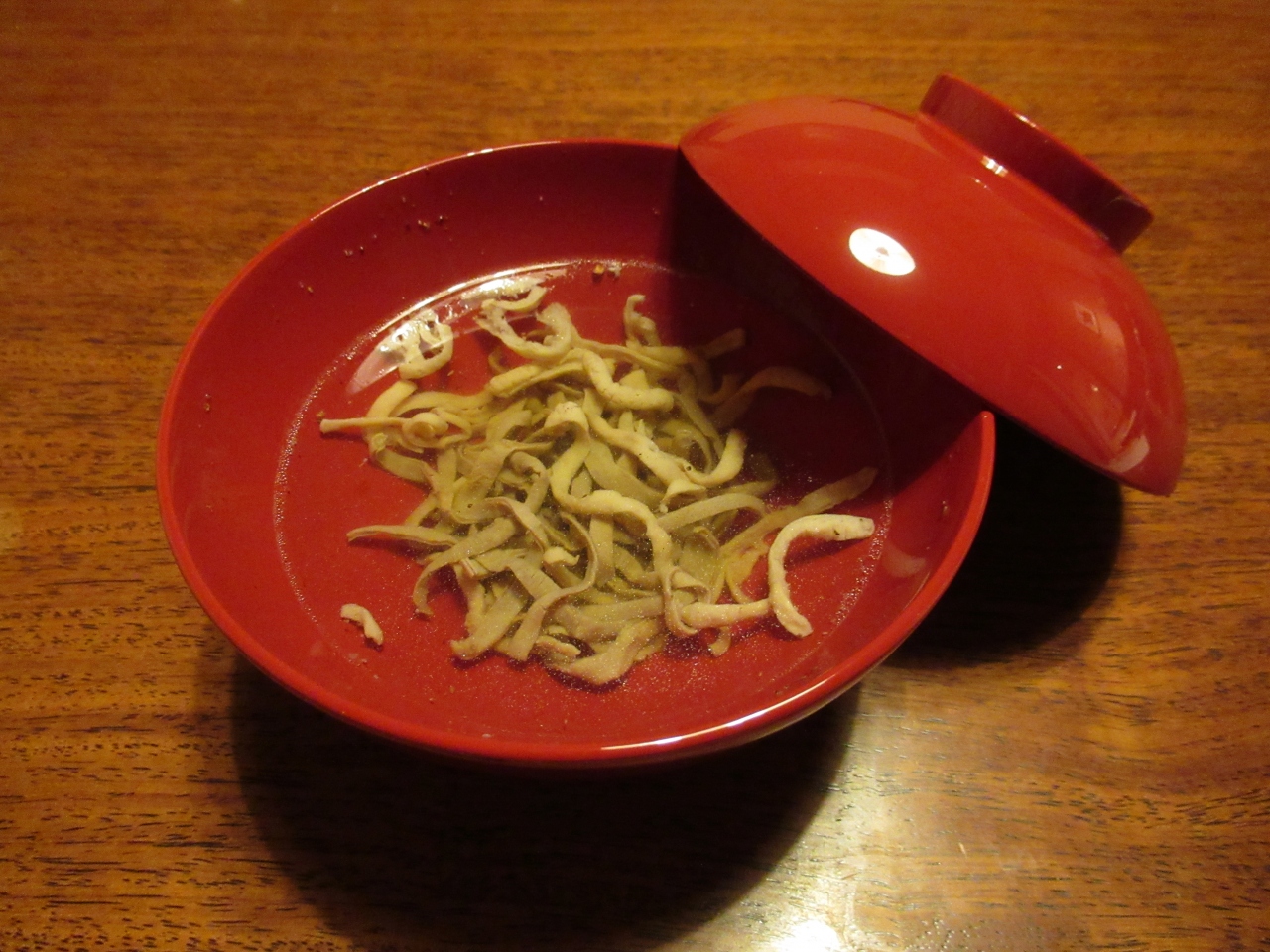 これから泊まった「あづま旅館」に戻り朝ご飯ですが、朝飯前のスープの如く軽~くお腹に収まりました。- 旅行時期