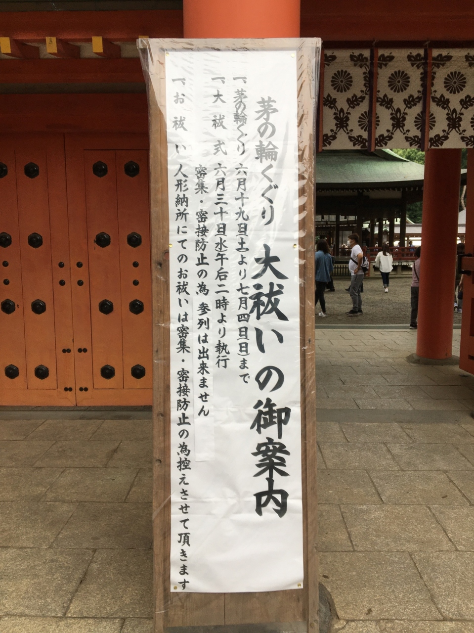 茅の輪潜りの「夏越しの大祓」とも言われます。