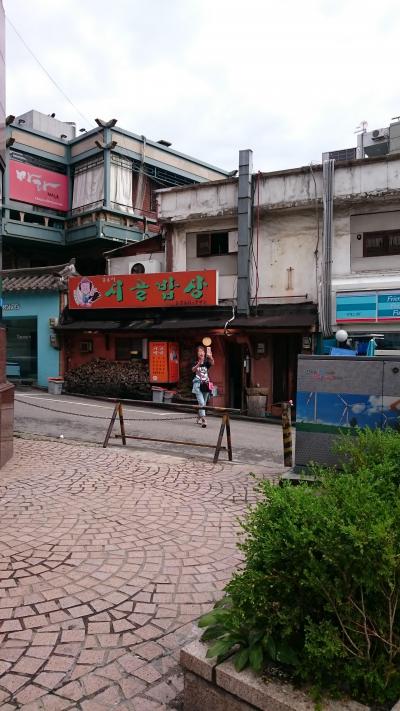 黒のサムゲタンは、見たことがなかったので、興味津々!普通のと食べ比べましたが、黒(烏骨鶏)の方が、味が濃厚に思えました。高麗人参も、ホクホクして食べやすかったです。テーブルに置いてある、2つの壺には、キムチが…。これがあまり辛くないので、何度もお替りをしました。