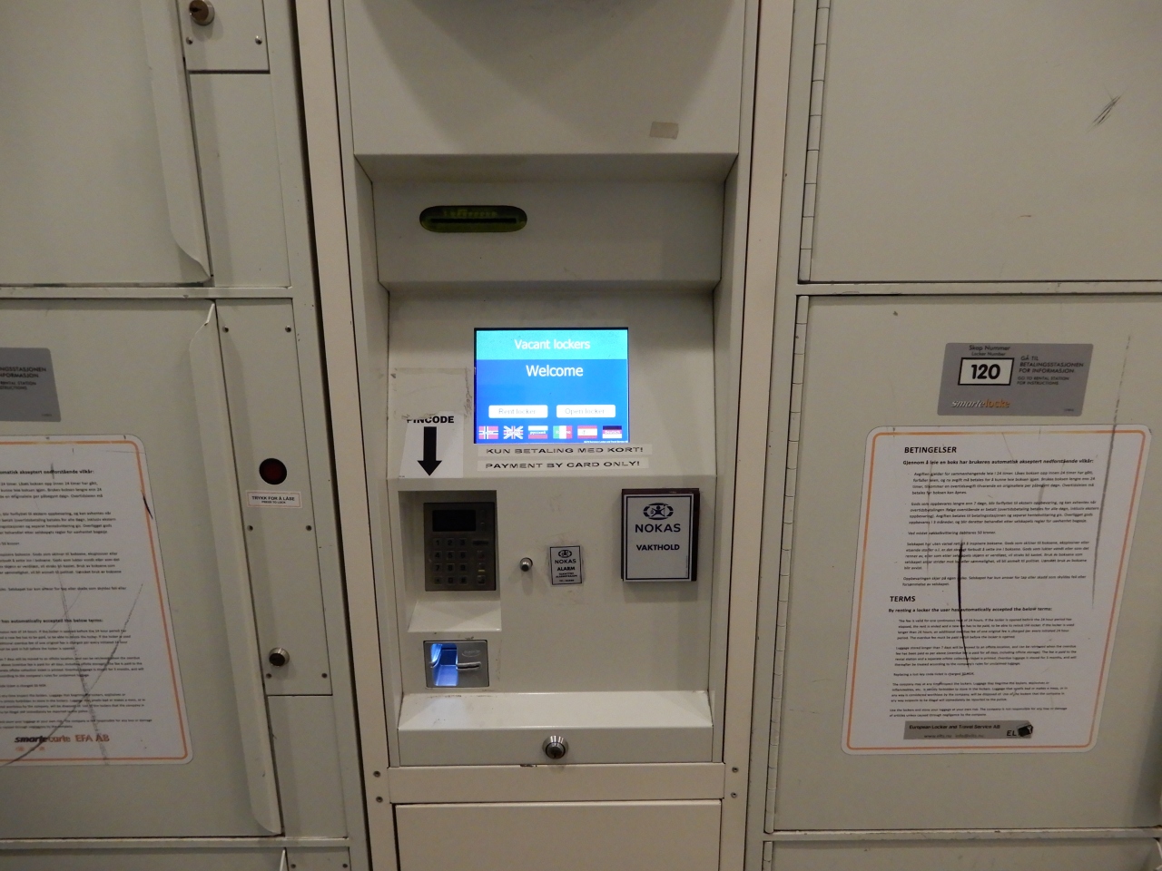 ベルゲン駅のロッカーは、大サイズ24時間60NOK、中サイズ50NOKでした。(2019年6月)