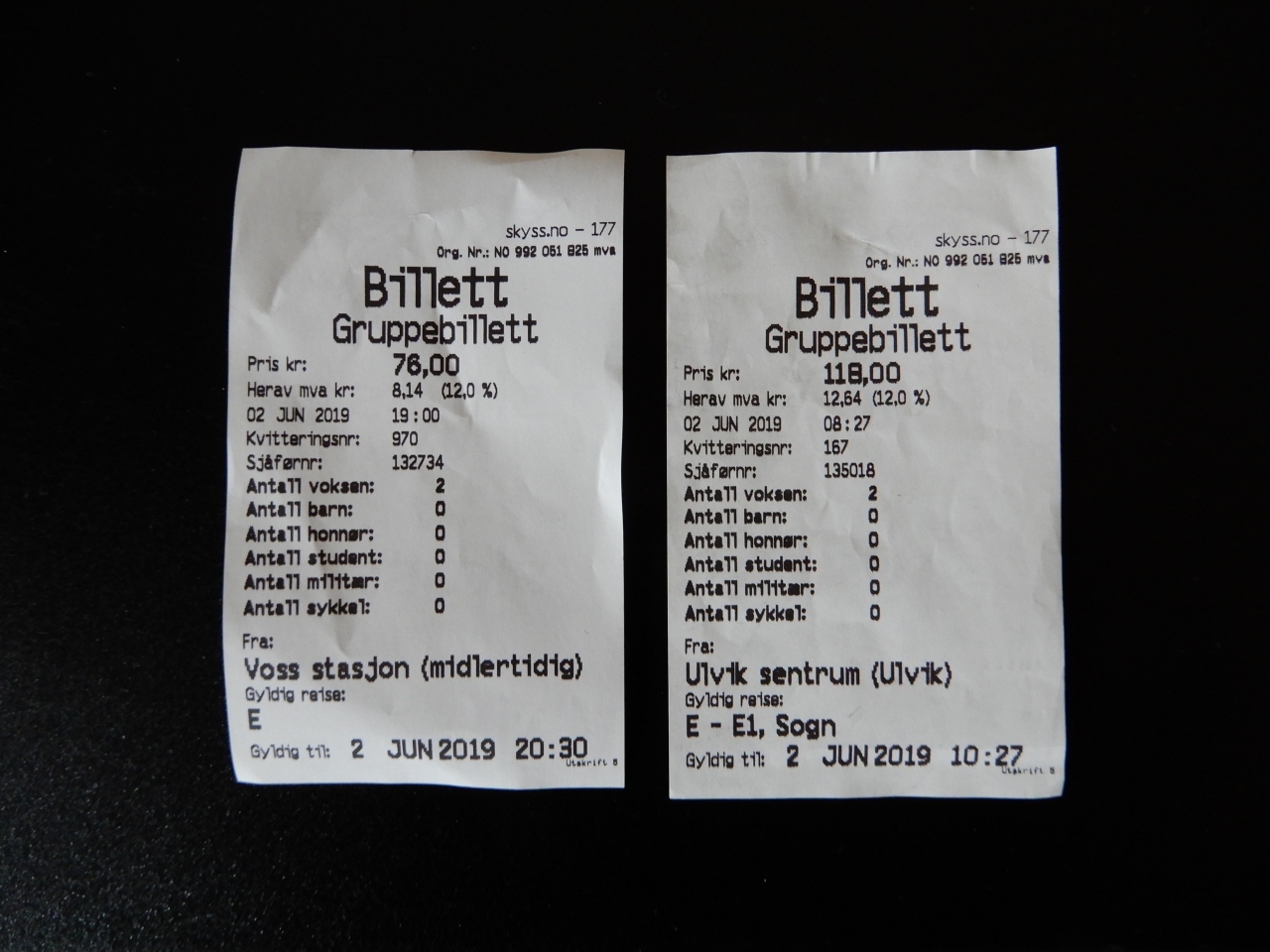 ➀ヴォス駅⇒ウルヴィク(ストランドフィヨルドホテル前) 1人38NOK