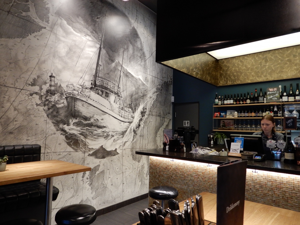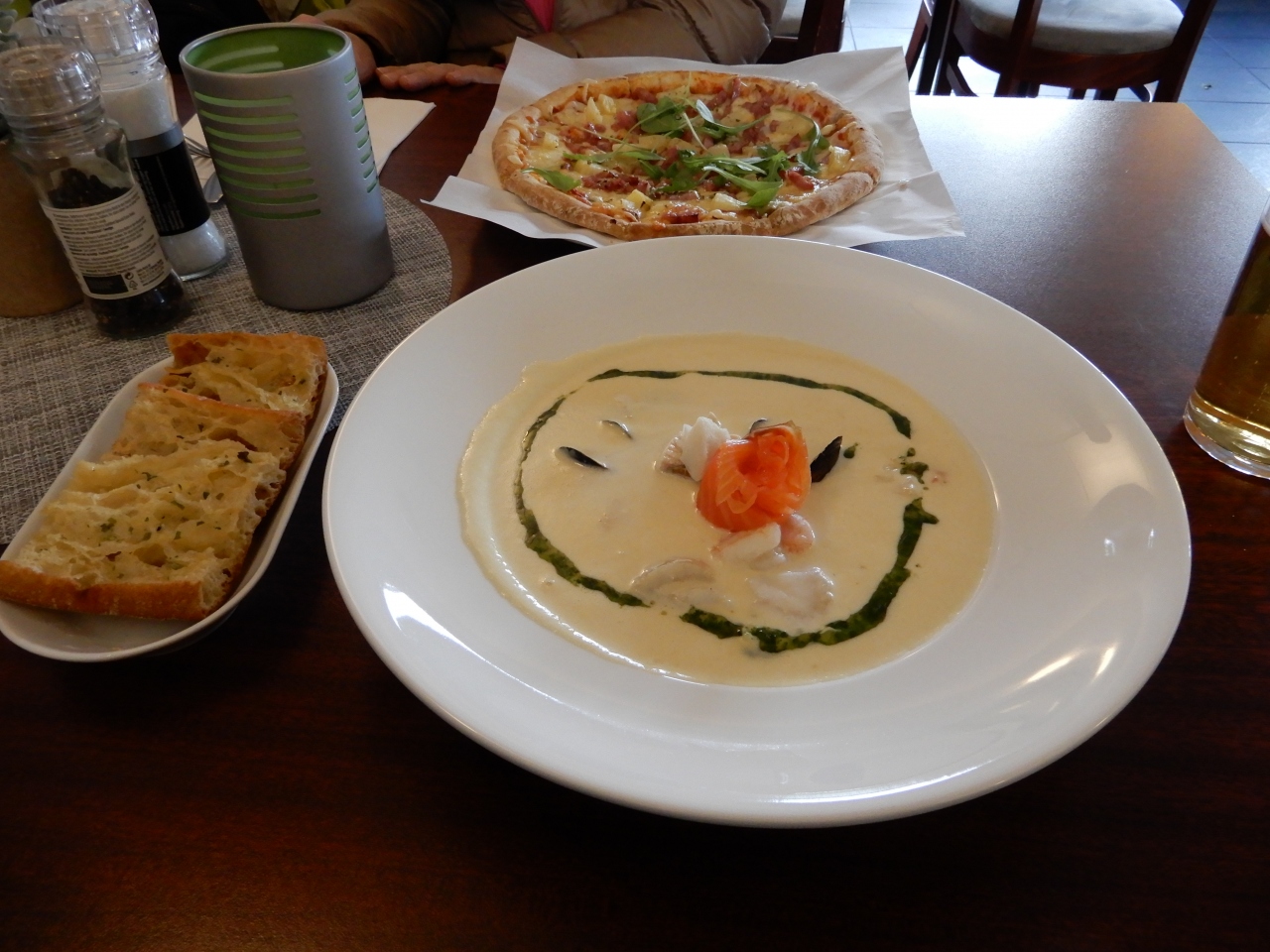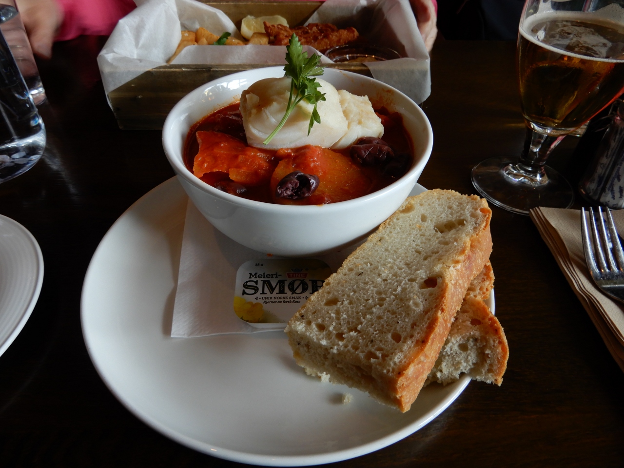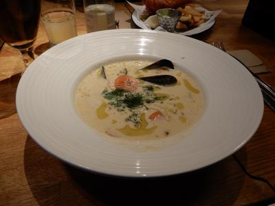 「クリーミー・フィッシュスープ」が絶品でした。一緒に頼んだピザも普通においしかったです。席に座って、メニュー(英語版あり)を見て、先にカウンターで注文して支払いを済ませるシステムです。スープとピザ、ビール1杯で405NOKでした。