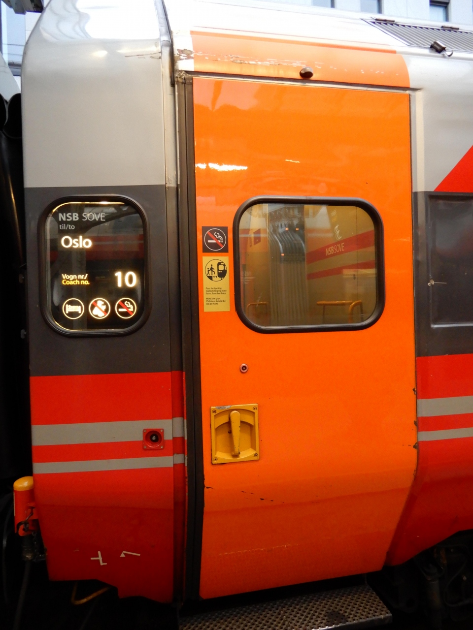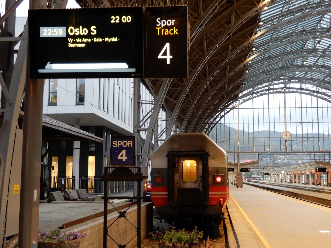 当初は、オスロ⇒ベルゲン間を、フィヨルド観光を挟んで乗車するつもりでしたが、予定していた日前後は、あいにく路線工事のため、途中まで代行バスになっていました。そこで、ベルゲンからオスロへの移動を、寝台列車にしました。