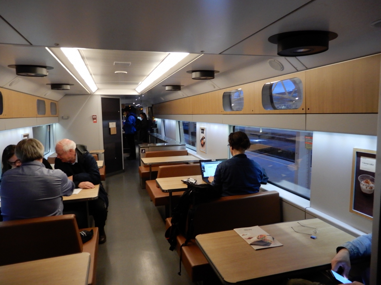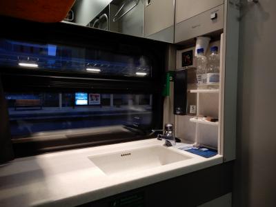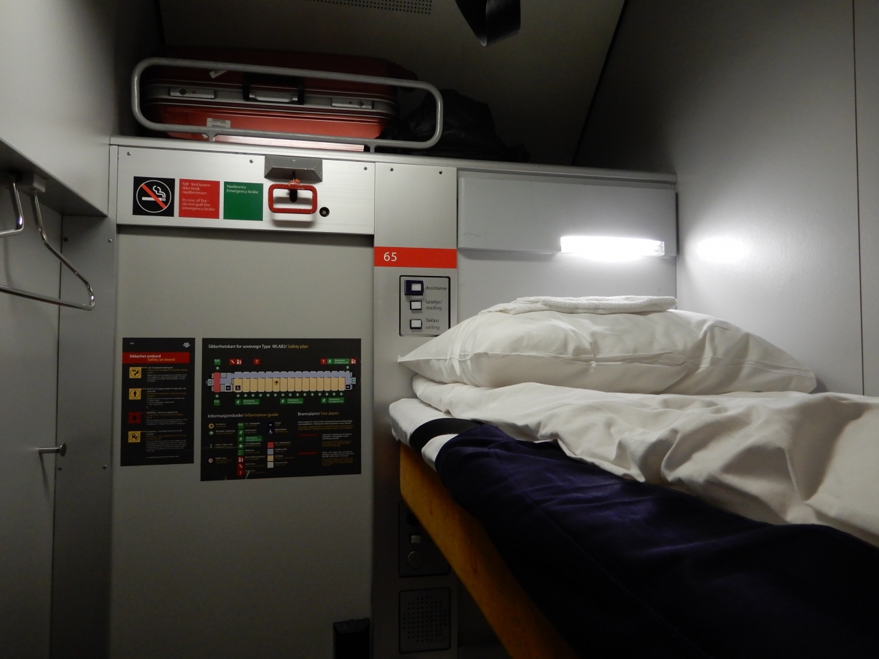 過去のブログの乗車記では、「到着駅(この場合はオスロ)近くのホテルで、特別料金で朝食やシャワーが使える案内がベッドにおいてあった」とのことでしたが、それはありませんでした。カフェ車両は朝まで営業しているのでそうなったのではと思います。ペットボトルの水とチョコレートが洗面台においてありました。- 旅行時期