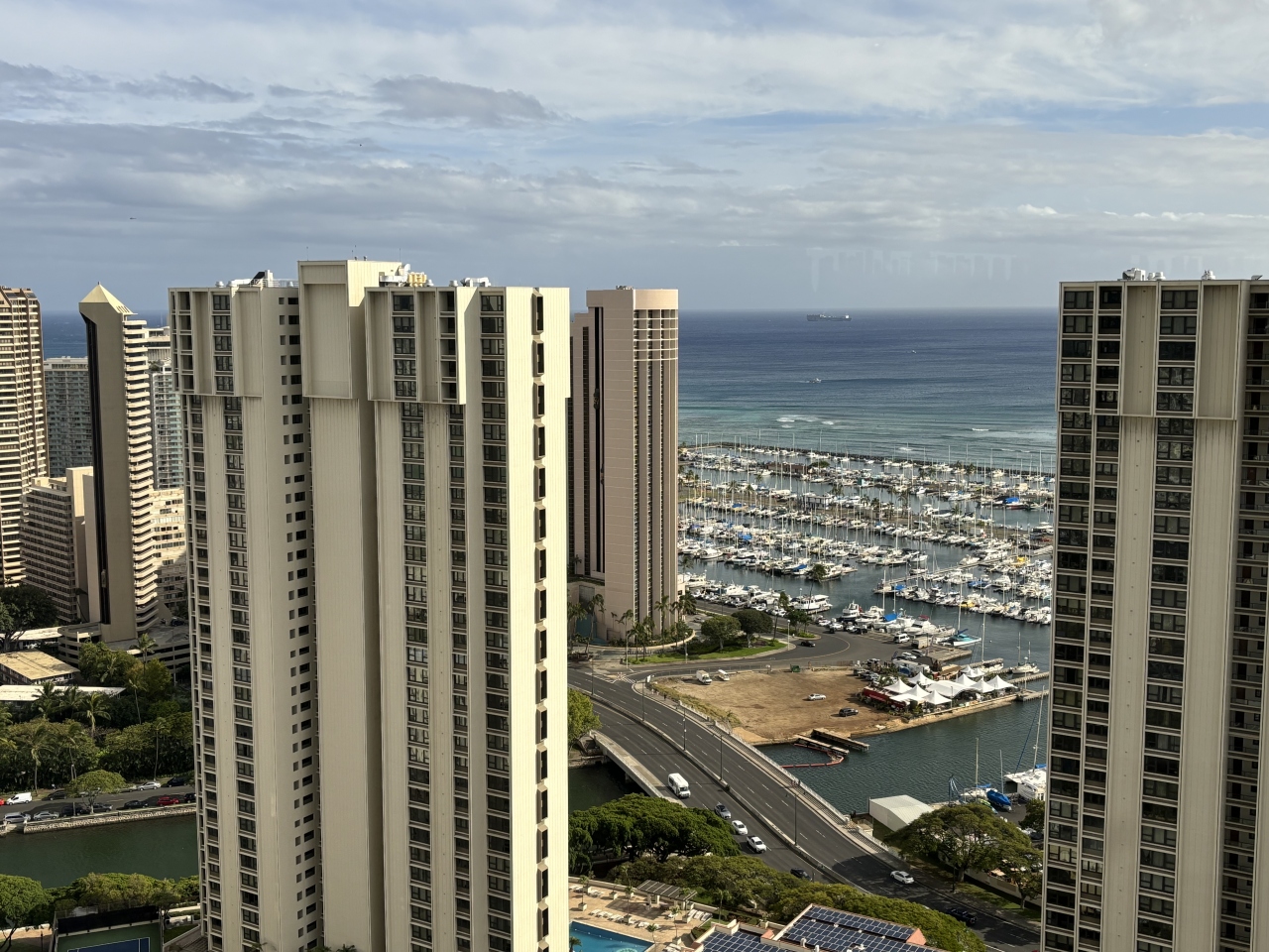 ノースショアへの現地ツアーバスを、ドライバーに頼んで「アラモアナ・ホテル」で下車して、ロビーにあるレストラン(36階)への直通エレベーターの前の列に,16時過ぎに並びました。行ったのは日曜日ですが、私達3人の前に約10名、16時半の開店直前には、合計20名以上が並んでいました。
