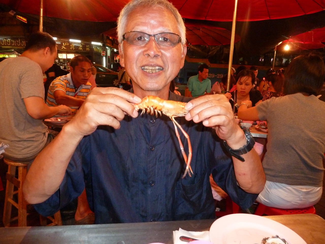 90年代はここ1軒だけだったが、今は周りに3件ほどの屋台が並んでいる。その他の屋台は食べたことが ないので味は分からない。向かいの屋台は川エビ5匹で150バーツで出している。