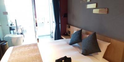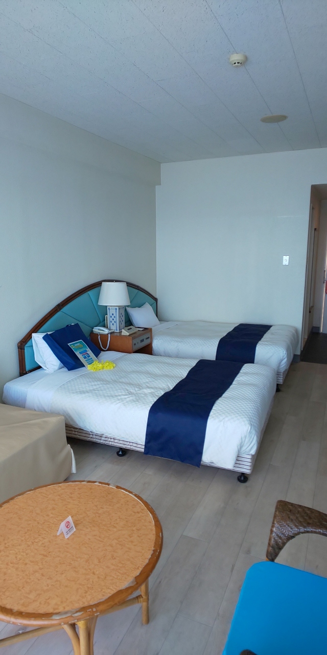 私には初めての格安ホテル予約サイト「Agoda」から最安値で予約したので、どんな部屋があてがわれるのかちょっと不安でしたが、ちゃんと二階のデラックスツイン(オーシャンビュー)だったので安心しました。(ホテル側のせいではありませんが)