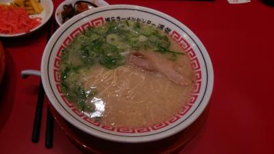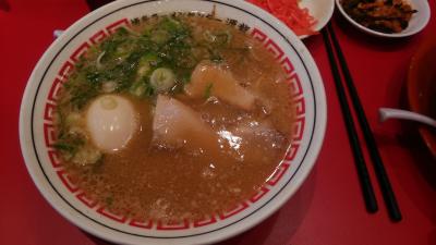 博多旅行の二日目、大宰府の一蘭で合格らーめんを食べそこなってちょっとがっかりしていたところ、空港に行く途中に真っ赤な看板が目についたので入店。大きい駐車場があるので車でさっと入りやすいです。