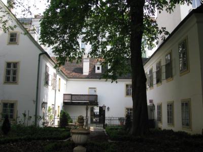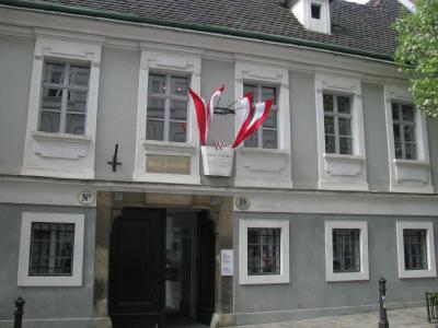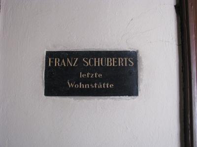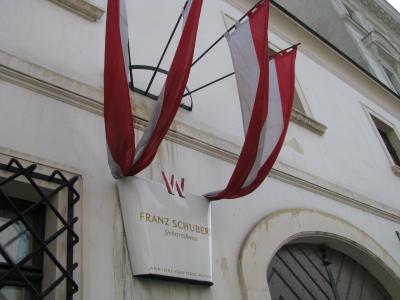 ウィーンの作曲家住宅めぐりの初めに行ったからかもしれませんが、ちょっと迷いました。普通の博物館とは違って、住居の博物館なので、ひっそりとあります。写真にも示していますが、このシリーズの博物館(他、ハイドン、ベートーベン、シュトラウス)には赤白の旗が表に飾ってありますので、それを目印にして行かれるとよいと思います。シューベルトの生家はとても気持ちのよい家です。昔の集合住宅はこのようだったのかと思うと、タイムスリップしたくなります。ツアーでもオプションで巡れるのか、日本のツアー観光客にもお会いしましたよ。
