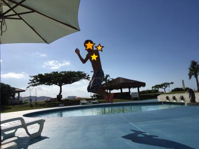 • ホテルのプールでジャーンプ♪プールの水はさすがに冷たいけど、プールサイ...