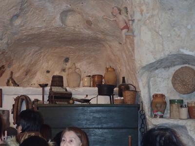 - 崖に並んだ家々は圧巻です。日本にはない景色ですね。住居内は簡単に意思を削って棚などを作ってあります。