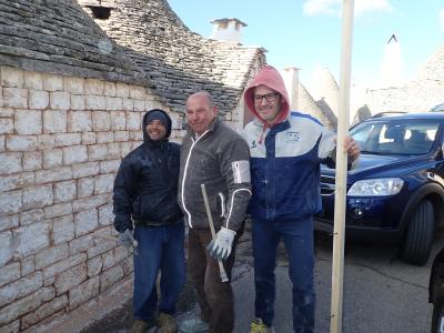 アルベロベッロはこの独特な家並みが特徴なので、男性にはあまり喜ばれないかもしれませんね。南イタリアの陽光と白い家々が本当にマッチする色彩だと思います。その土地にあった工夫が施されている住居です。家を修繕しているおじさんたちもここを守っていく誇りを持っておられると思いました。