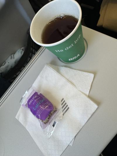 1時間程度のフライトでしたが、お菓子とコーヒー・お茶が出てきました。