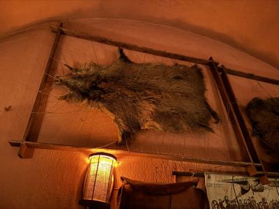 「こないだ、猪狩ってきてさ、今、冬用に毛皮干してんだ!」「へーいいじゃ...
