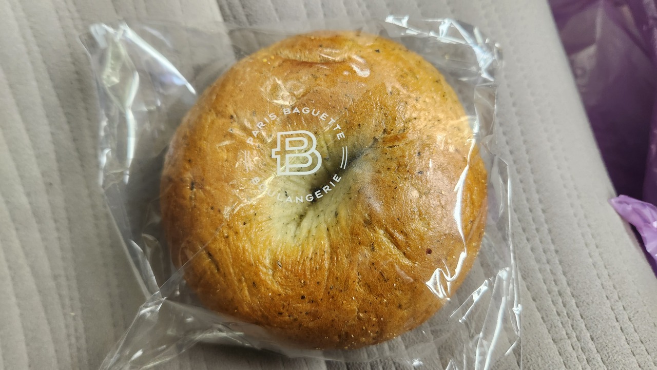 韓国ベーカリーチェーンのパリバケにベーグルを食べに来ました。仁川空港第一ターミナル内には三階の出発ロビーのあるお店はイートインスペースもあります。イートインスペースにあるコンセントは壊れているのか充電は出来なかったです。またスカイトレインに乗ったLCCターミナル内のはパリクロワッサンというお店でした。