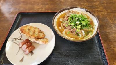 徳島から香川県に入って最初にあるうどん屋さんです。向かいの讃岐家は姉妹店のようです。セルフうどんで先ず最初にうどんを注文してから揚げ物をトングで取ります。今回は肉うどんを注文しました。出汁はぬるく、甘く煮込んだ肉でした。