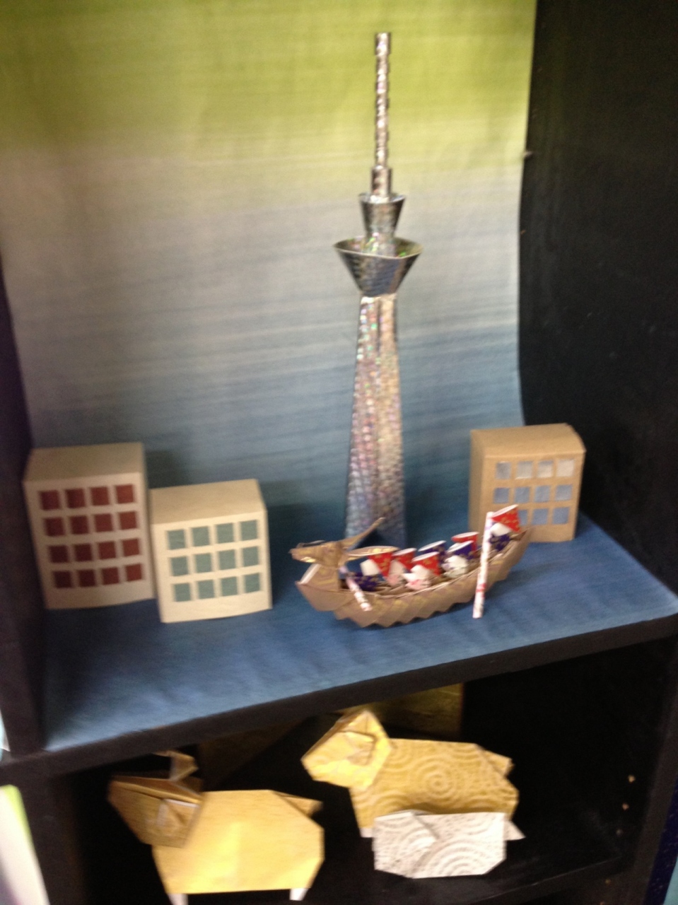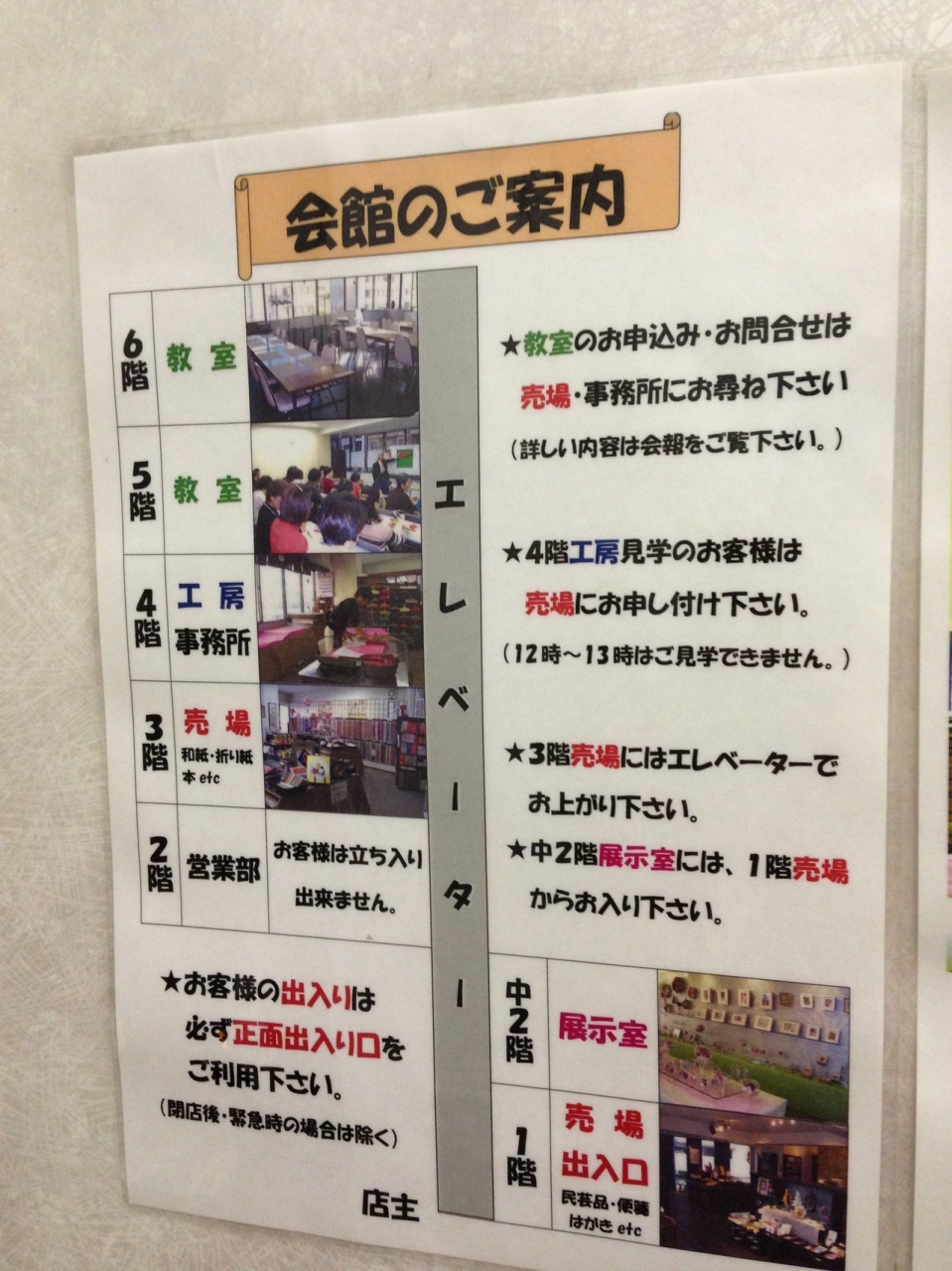 前から気になっていたおりがみ会館。七夕がちかいのでショーウインドウには七夕飾りが飾られていました。入り口から入るとすぐにいろいろな作品をみることができます。おりがみだけでなく、和紙人形やペーパークイリングのようなものもありました。二階はギャラリー、三階は売店、四階は工房になっています。三階にはたくさんの和紙やおりがみが売られており、子供も大人も楽しめます。