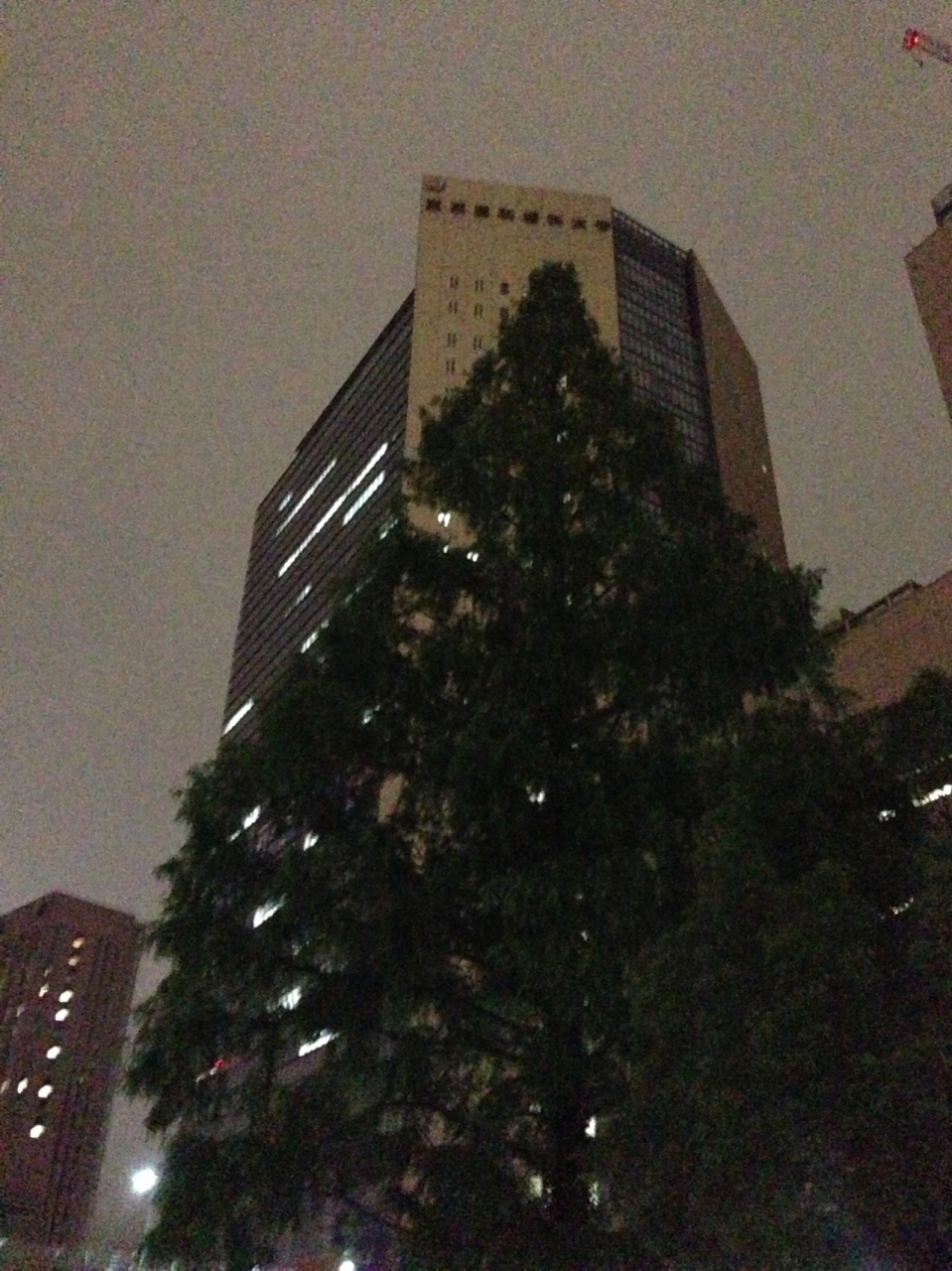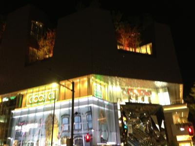 天空のスタバと呼ばれるスタバがあるということでしたのでいってみました。建物の前から見上げると楽しげな光がみえました。