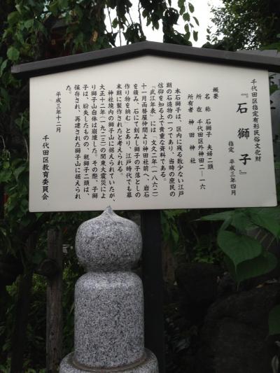 神田明神の中にあります。一見わからなかったのですが、よく見ると獅子がのっています。