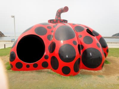 海に面したひときわ鮮やかな色遣いのかぼちゃが直島の象徴となっています。これを見なければ直島の重要なものを見逃した気分になると思います。赤いかぼちゃの表面の黒い点々のいくつかは穴になっています。人が通れるサイズの大きな穴と、中に入って瀬戸内海を見渡せる小さな穴があります。