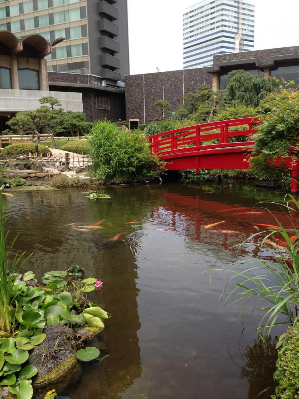 重厚な柄のカーペット、立派な生花、日本庭園のある昔ながらの高級ホテルです。レストランやお店もたくさん入っていて、時代の最先端をいくものは少ないけど上質なものばかりです。サツキというコーヒーショップは朝6時からあいていたのがよかったです。
