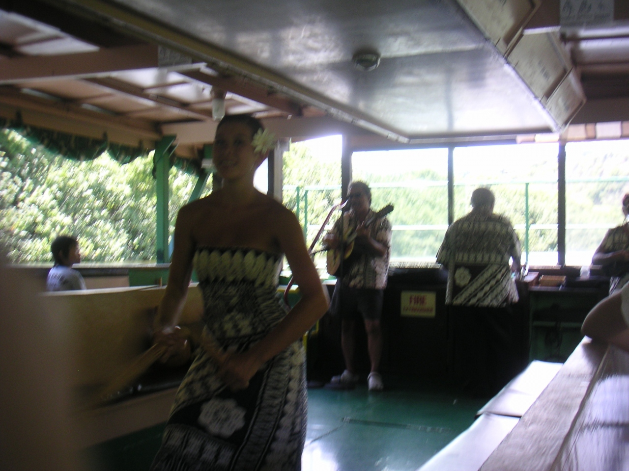シダの洞窟までの遊覧船でフラダンスとハワイアンミュージックが楽しめます