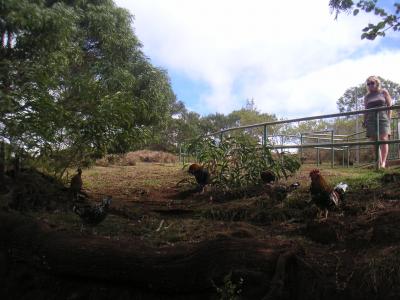 オプショナルツアーのバスに揺られて行きました。渓谷まで行く途中でコーヒー畑がたくさんありました。バスに乗っていると車酔いしそうな悪路でしたが、景色は壮観でした。周囲には野生の鶏だけでなく豚などもいるということでした。