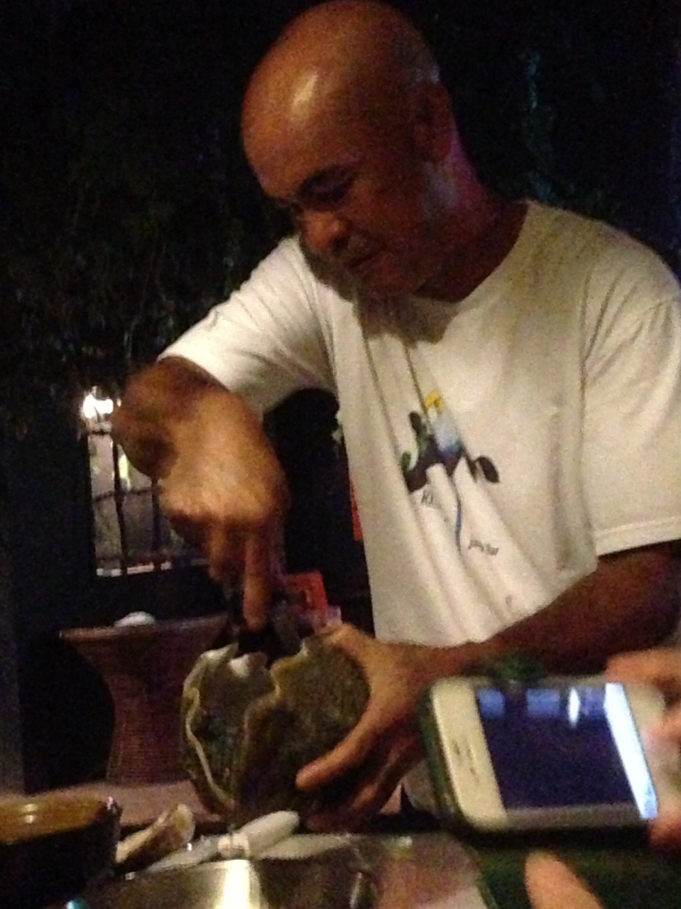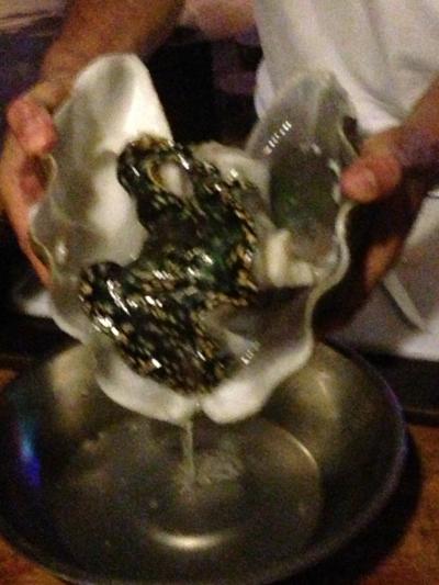 プランテーションリゾートでナイトカヤックをした後行きました。見どころは目の前でさばいてくれるシャコガイのお刺身です。とても新鮮でプリプリしていて美味しかったです。またこの店がある場所がジャングルの中の小路風に作られていてこれも面白かったです。