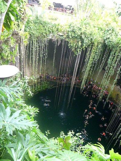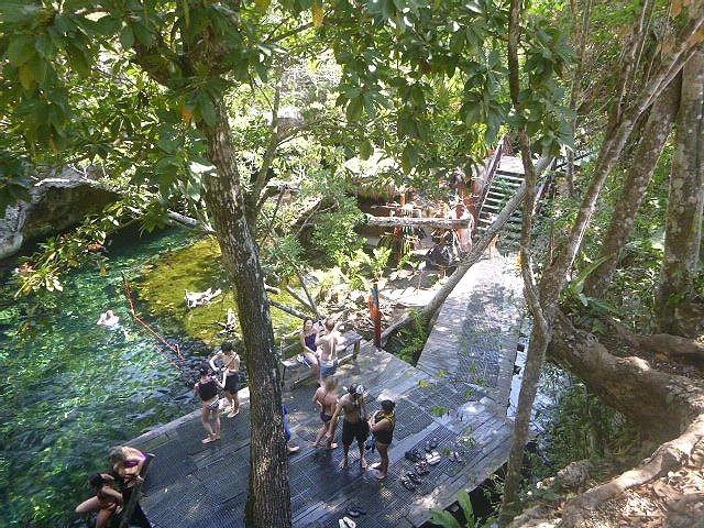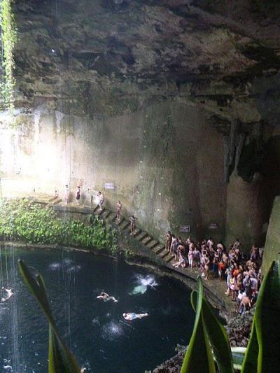 セノーテイキルはカンクンから結構遠く車で3時間程ですがチチェンイッツァ遺跡から近いので、ついでに寄るというのがお勧めですね!セノーテイキルでは、入り口のジャングルから壁伝いの階段を下に降りるようになっています!透明度はイマイチで、何より深度40mで浮遊器具無しでは遊泳不可も納得で、デジカメやdiverwatch落としたら最後なので、皆さんご注意下さい!