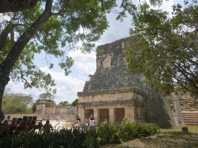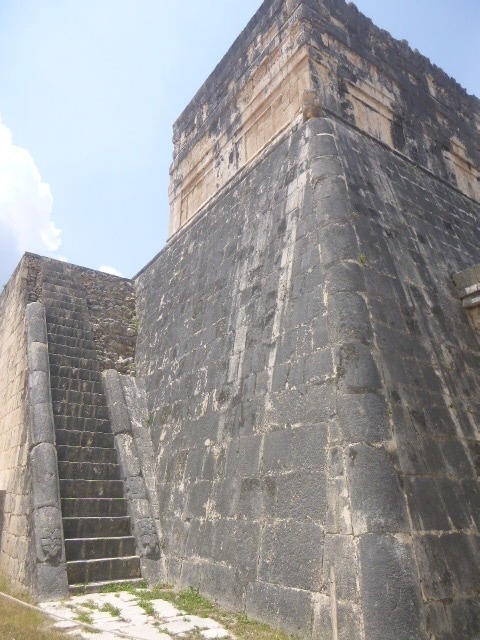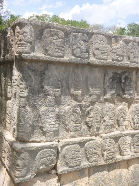 テンプロマヨールや、色々な遺跡にツォンパントリがありましたが、チチェン・イッツァ遺跡にもありました!「頭蓋骨の棚」ツォンパントリですね!当時は生贄の頭蓋骨に穴を開けて、それらに棒を通して、実際に壇上に並べたとか?かなりグロいですが、生贄としてはそう言うモノだったのカモしれませんね