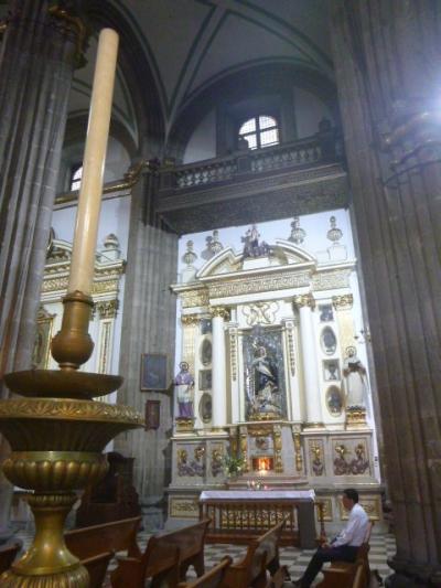 大聖堂は16世紀アステカ帝国を滅亡に追い込んだ、スペインのエルナン・コルテスの命により建立され、当初は木造に草葺き屋根の質素な造りだったそうで、その後の改築でスペイン建築家も招聘され、完成までに250年を要したとか。大聖堂は、現在地盤沈下の危機だそうで対策中らしい!因みに「浅黒い毒薬のキリスト」が有名です