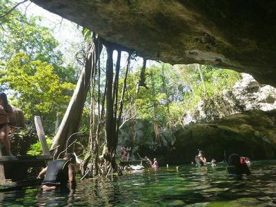 早朝から1dayツアーに参加しました!まずはグランセノーテに行きましたがココは透明度が命なので早朝が必須!セノーテとは地下水が貯まった泉の地上部分が陥没して現れた場所です。自然保護の為、化粧や日焼け止めクリーム等を洗い流してセノーテに入ります!写真は防水タイプのデジカメで!脱げないタイプのシューズも便利でしたよ!