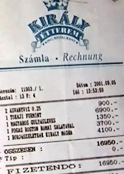王宮を見学したあとは、少し遅めのお昼を、ヒルトンホテルから王宮と反対側に下って行って右手の「KING」という店に行きました。私達は奥まった処の「ステンドグラス」のある高級な雰囲気の席でグヤーシュとお魚をオーダーしました♪
