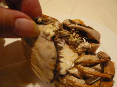 友人に上海蟹の食べ方を教わりつつ私の食べ方も上達しました