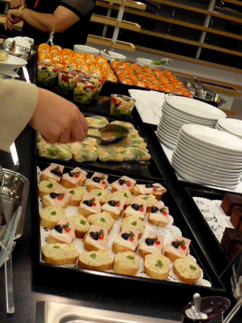カナッペに生春巻、カップ入カクテルサラダに巻寿司もある