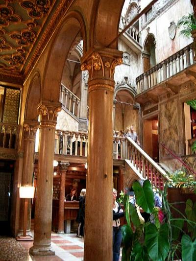 サンマルコ広場のサンマルコ寺院と逆側の方の「C.Larga???通り」沿いに行った処に位置しており、ロビー等も少し古く暗い雰囲気ですが、朝食も美味しいし、すぐ裏手のフェニーチェ劇場のチケットを融通してくれたりもします。