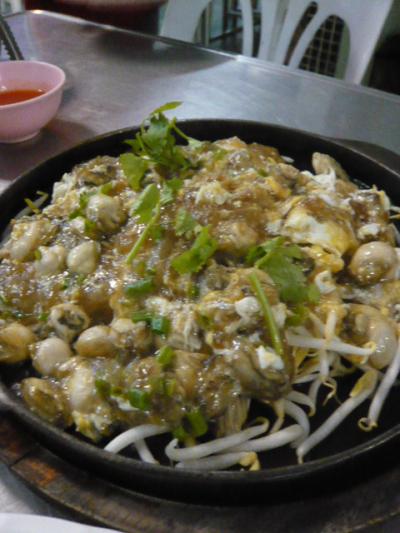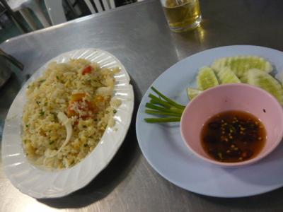 ここは観光客は全然来ない、地元の人達ばかりの店でした。店内も町の食堂風で、当然安くて美味しい店って事ですネ! バンコク在住の友人が紹介してくれた店です(^。^)蟹炒飯と添えの胡瓜(^。^)この炒飯にトマトが入ってた! 続いてプーパッポンカリー♪一見「辛そう」に見えますが、蟹炒飯に掛けて食べるのが、メチャメチャ美味しいんです 。それと牡蠣の「オースワン」は牡蛎と卵にとろみを付けた鉄板焼で、甘辛いチリソースを掛けて食べますが、不思議な美味しさでした。バンコクに行ったらまた寄りたい店です。